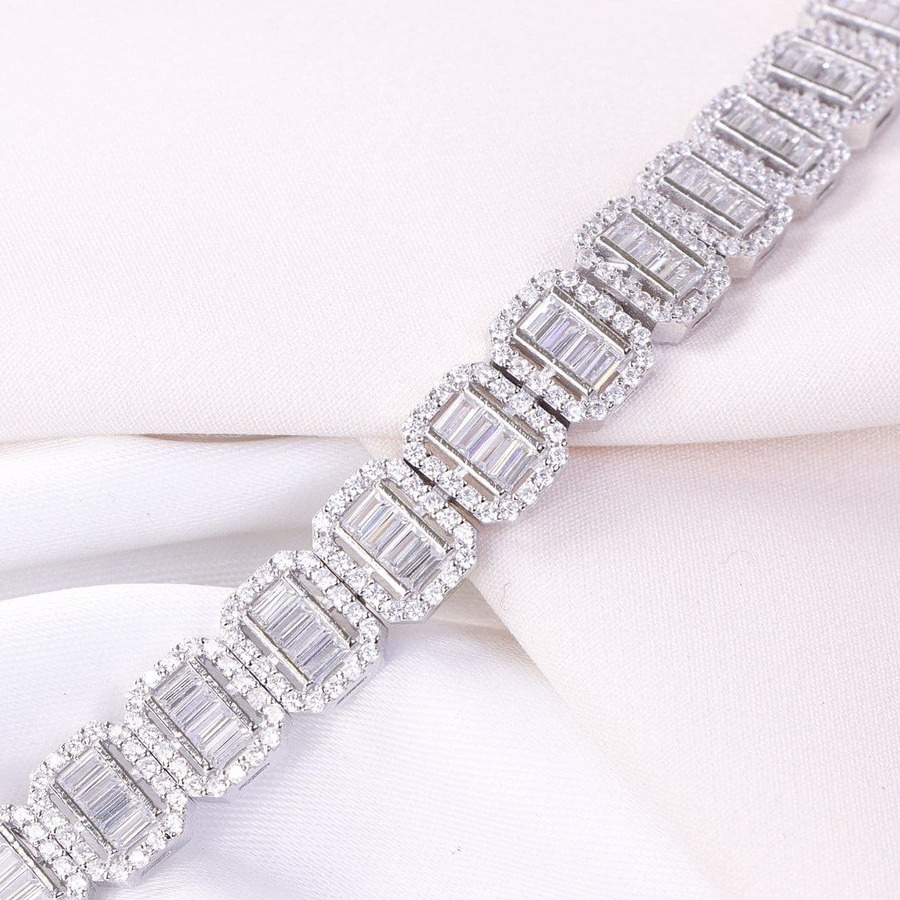 دستبندهای طرح جواهر میکرو شرکت با آبکاری های خاص طلاسفید رودیوم و با بهترین روش های ساخت دنیا تولید شده اند