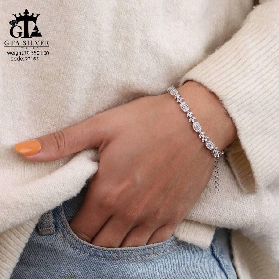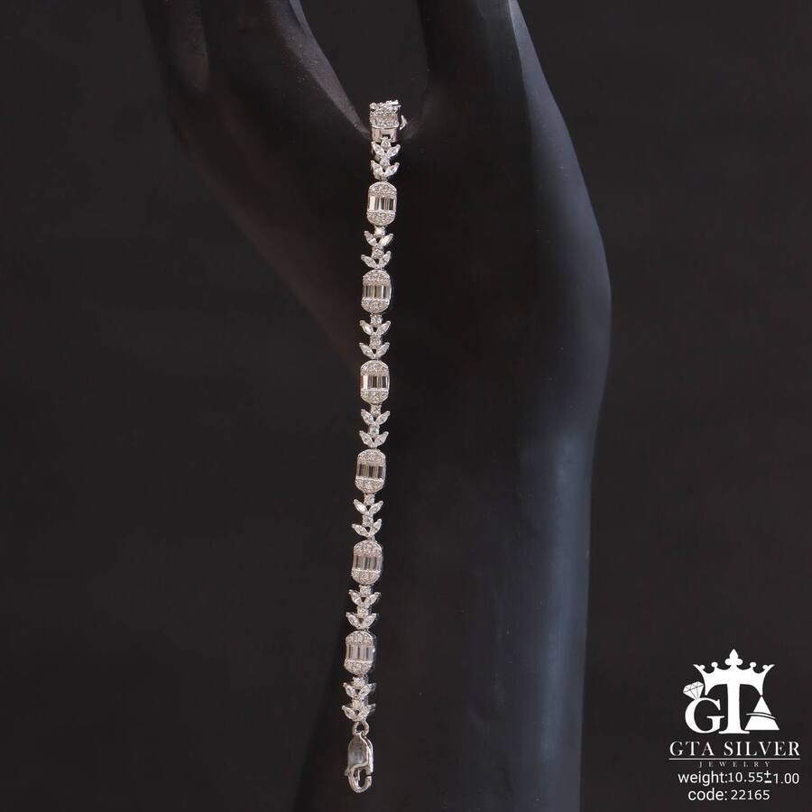 دستبند میکرو نقره همراه با روکش آبطلای سفید؛ عیار 925، تمامی نگین های این دستبند جدید و ظریف با روش جدید میکروستینگ مخراج کاری شده است.