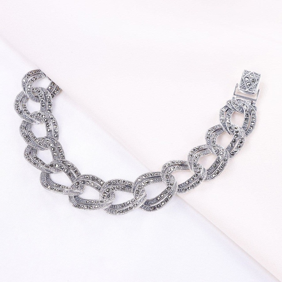 دستبند مارگازیت مارک سما از نقره عیار 925 با نگین های مارگازیت میباشد که با بروز ترین دستگاه های روز دنیا تولید شده و دارای کیفیت بی نظیری میباشد.