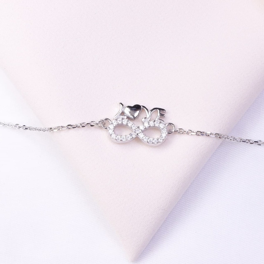 دستبند میکرو طرح بینهایت از نگین های برلیان و نقره عیار 925 ساخته شده است.