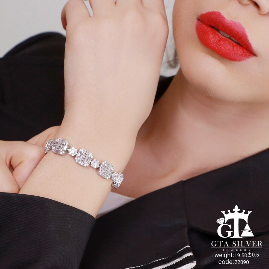 دستبند میکرو نقره همراه با روکش آبطلای سفید؛ عیار 925، تمامی نگین های این دستبند جدید و ظریف با روش جدید میکروستینگ مخراج کاری شده است.