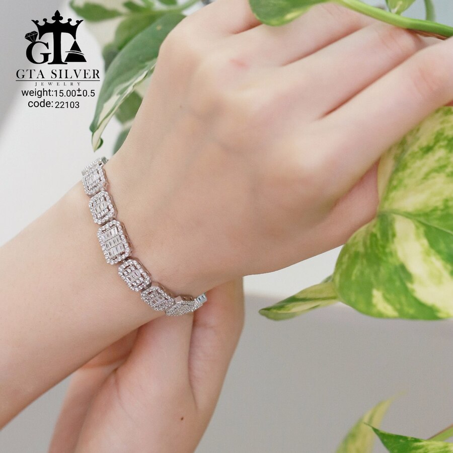 دستبند میکرو نقره همراه با روکش آبطلای سفید؛ عیار 925، تمامی نگین های این دستبند جدید و ظریف با روش جدید میکروستینگ مخراج کاری شده است.
