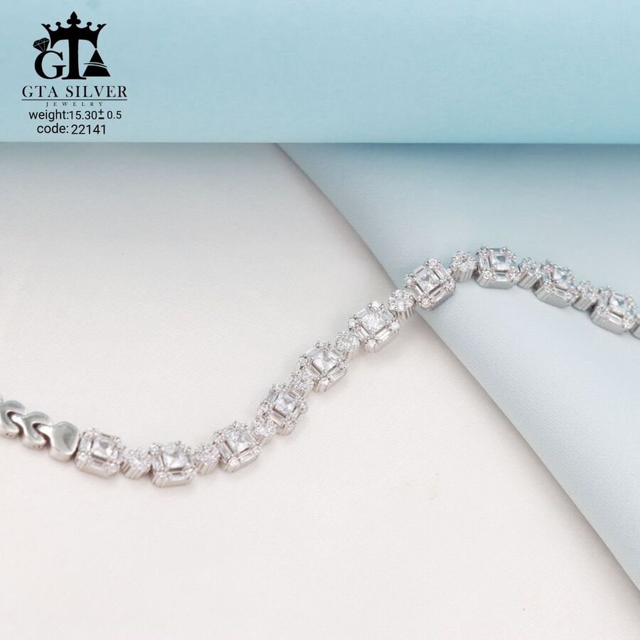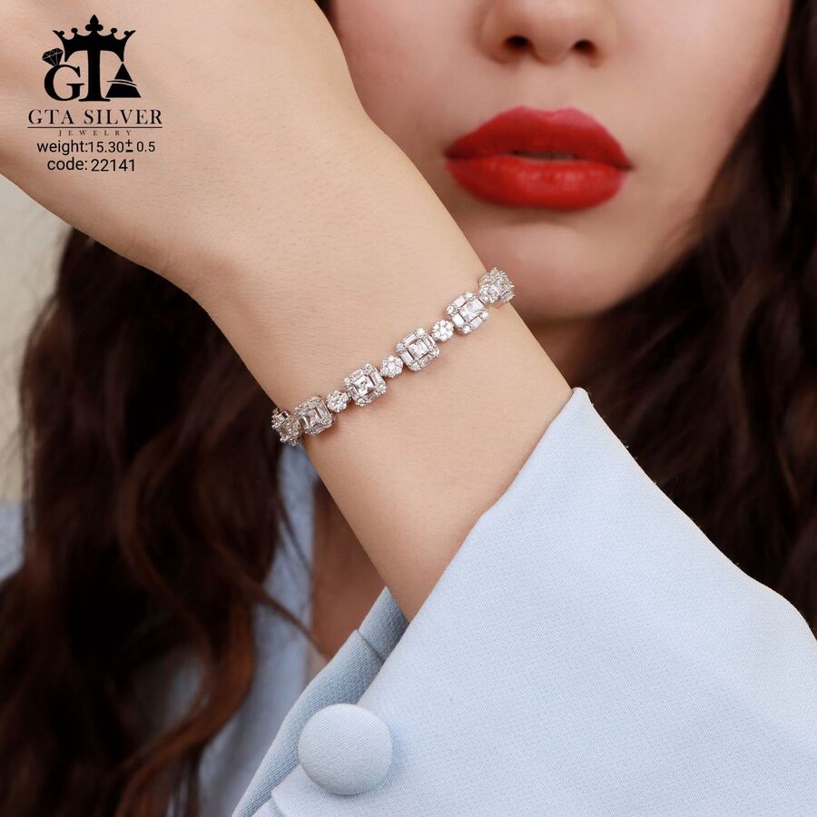 دستبند میکرو نقره همراه با روکش آبطلای سفید؛ عیار 925، تمامی نگین های این دستبند جدید و ظریف با روش جدید میکروستینگ مخراج کاری شده است.