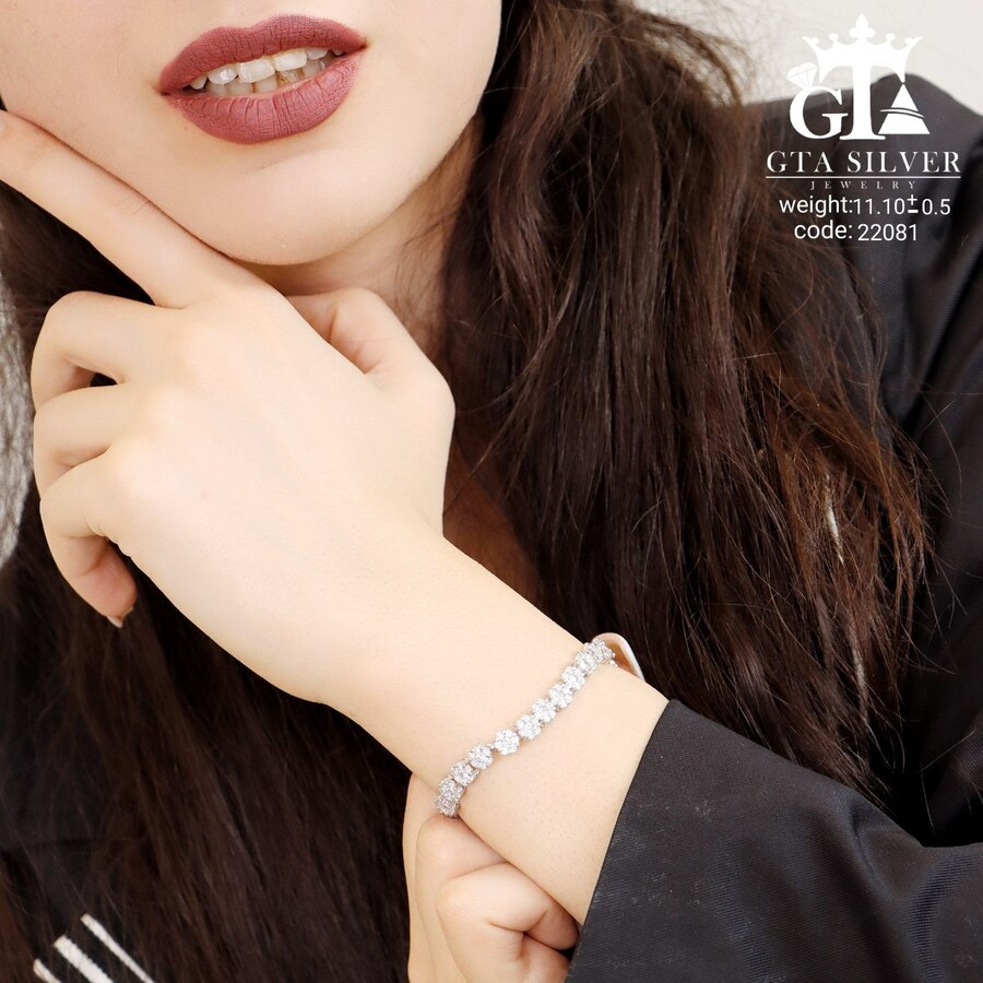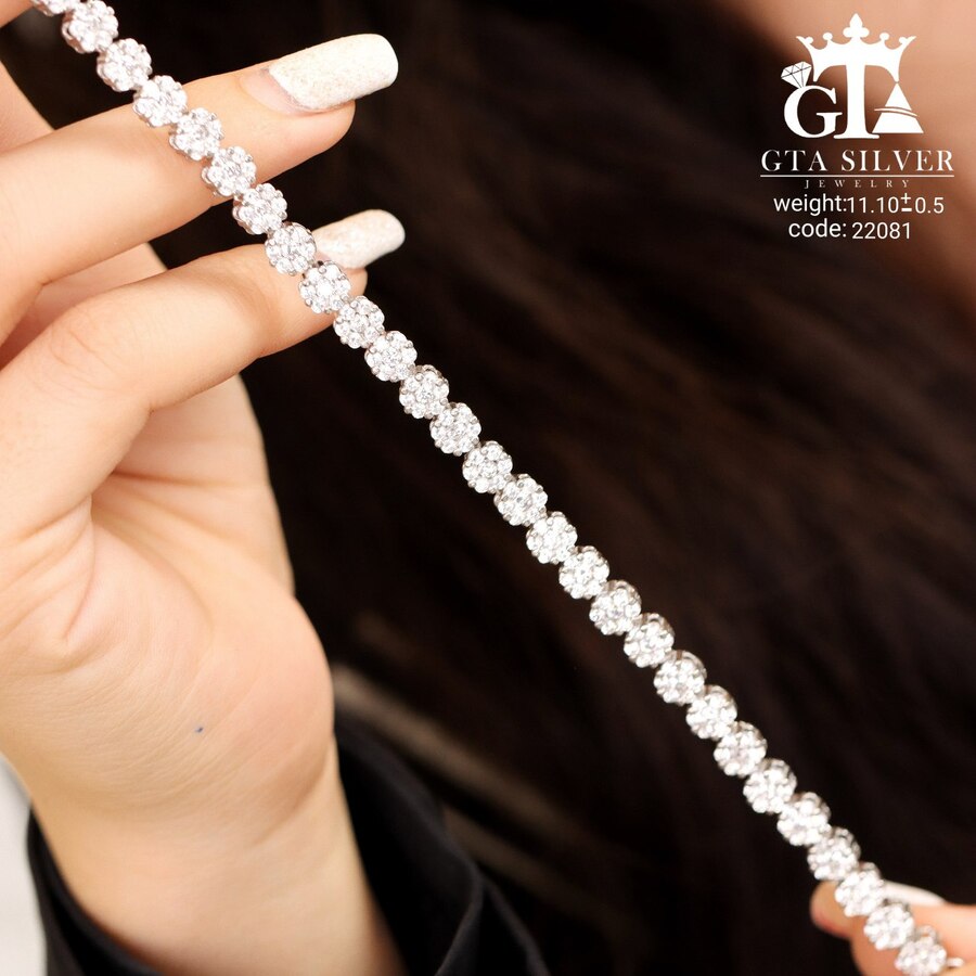 دستبند میکرو نقره همراه با روکش آبطلای سفید؛ عیار 925، تمامی نگین های این دستبند جدید و ظریف با روش جدید میکروستینگ مخراج کاری شده است.