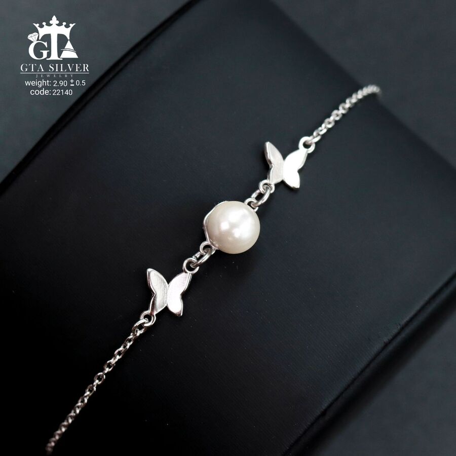 دستبند نقره میکرو طرح پروانه مروارید دار کد 22140