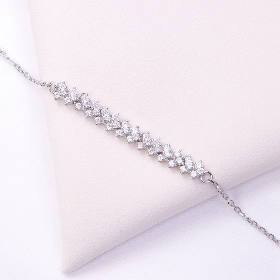 دستبند میکرو از نگین های برلیان و نقره عیار 925 ساخته شده است.