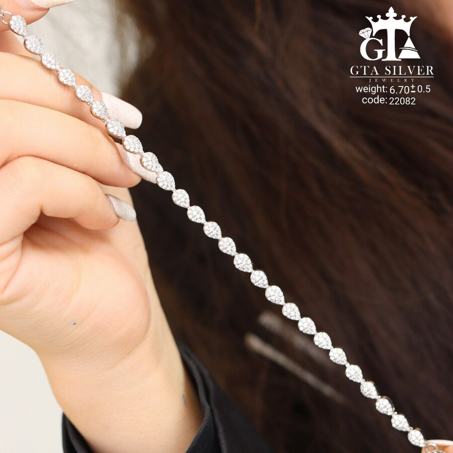 دستبند میکرو نقره همراه با روکش آبطلای سفید؛ عیار 925، تمامی نگین های این دستبند جدید و ظریف با روش جدید میکروستینگ مخراج کاری شده است.