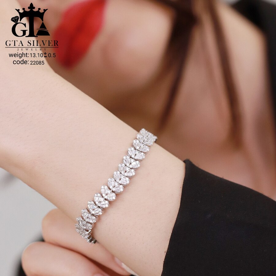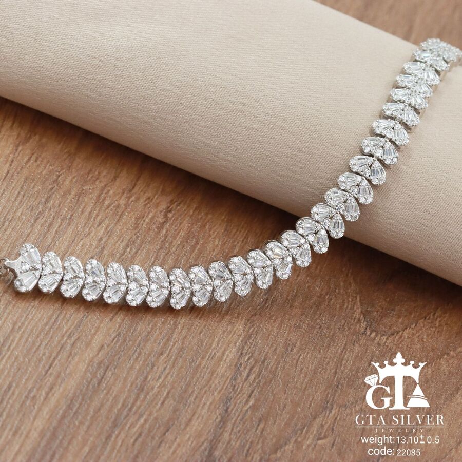 دستبند میکرو نقره همراه با روکش آبطلای سفید؛ عیار 925، تمامی نگین های این دستبند جدید و ظریف با روش جدید میکروستینگ مخراج کاری شده است.