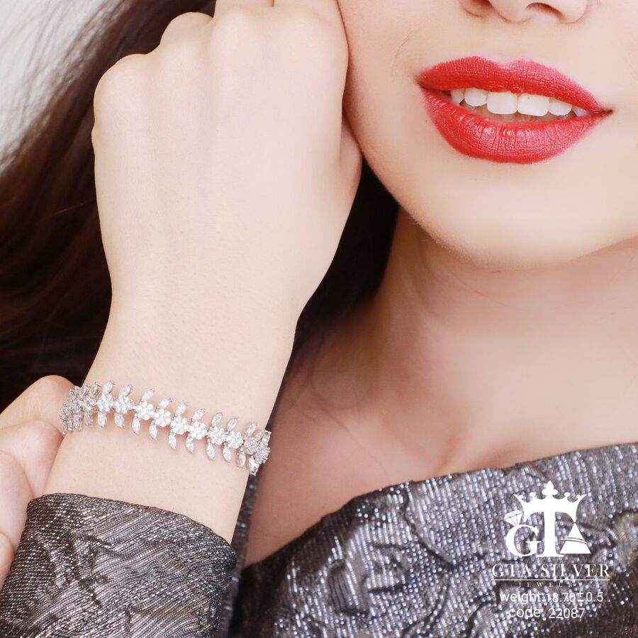 دستبند میکرو نقره همراه با روکش آبطلای سفید؛ عیار 925، تمامی نگین های این دستبند جدید و ظریف با روش جدید میکروستینگ مخراج کاری شده است.