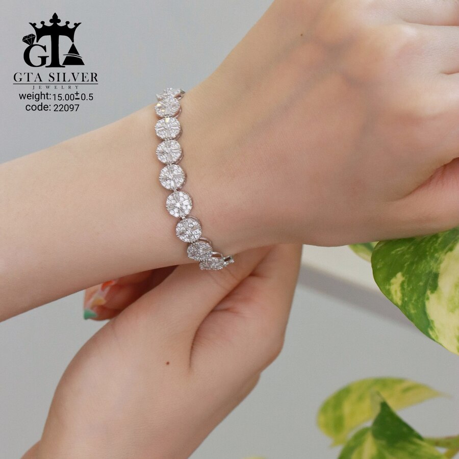 دستبند میکرو نقره همراه با روکش آبطلای سفید؛ عیار 925، تمامی نگین های این دستبند جدید و ظریف با روش جدید میکروستینگ مخراج کاری شده است.