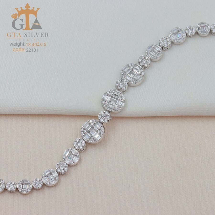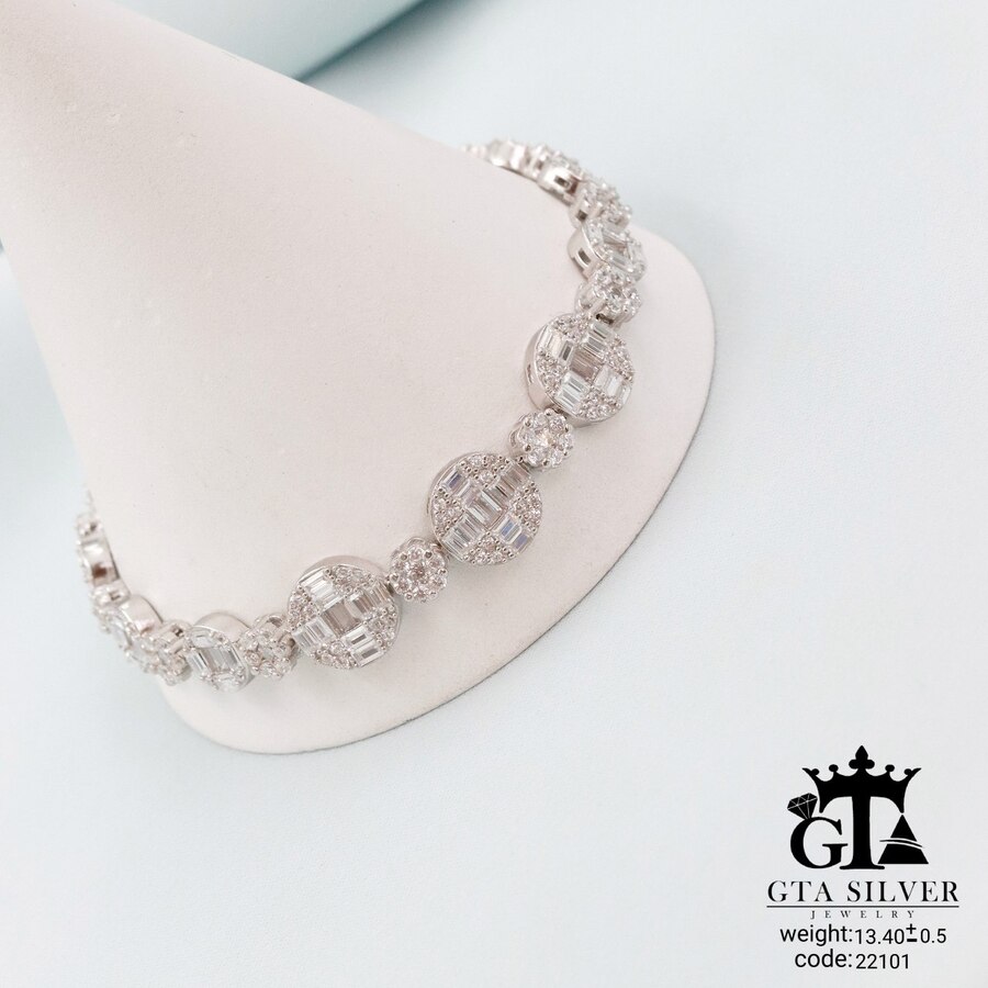 دستبند میکرو نقره همراه با روکش آبطلای سفید؛ عیار 925، تمامی نگین های این دستبند جدید و ظریف با روش جدید میکروستینگ مخراج کاری شده است.