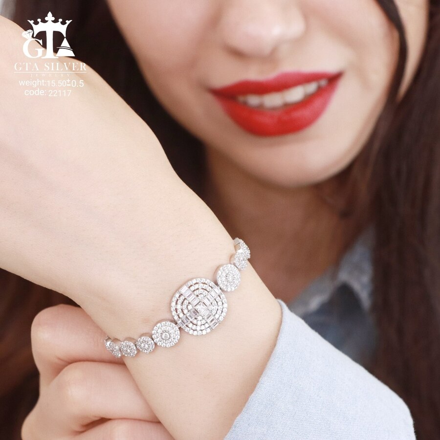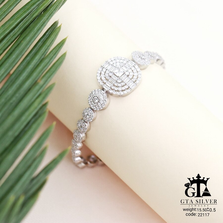 دستبند میکرو نقره همراه با روکش آبطلای سفید؛ عیار 925، تمامی نگین های این دستبند جدید و ظریف با روش جدید میکروستینگ مخراج کاری شده است.