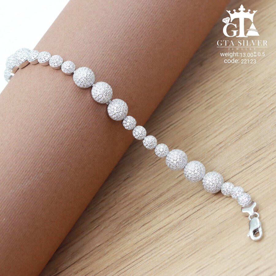 دستبند میکرو نقره همراه با روکش آبطلای سفید؛ عیار 925، تمامی نگین های این دستبند جدید و ظریف با روش جدید میکروستینگ مخراج کاری شده است.