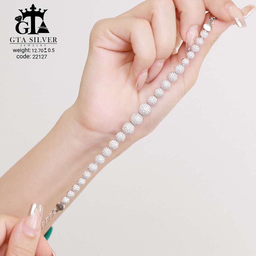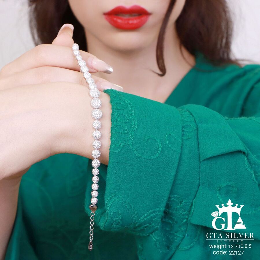 دستبند میکرو نقره همراه با روکش آبطلای سفید؛ عیار 925، تمامی نگین های این دستبند جدید و ظریف با روش جدید میکروستینگ مخراج کاری شده است.