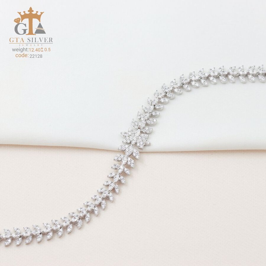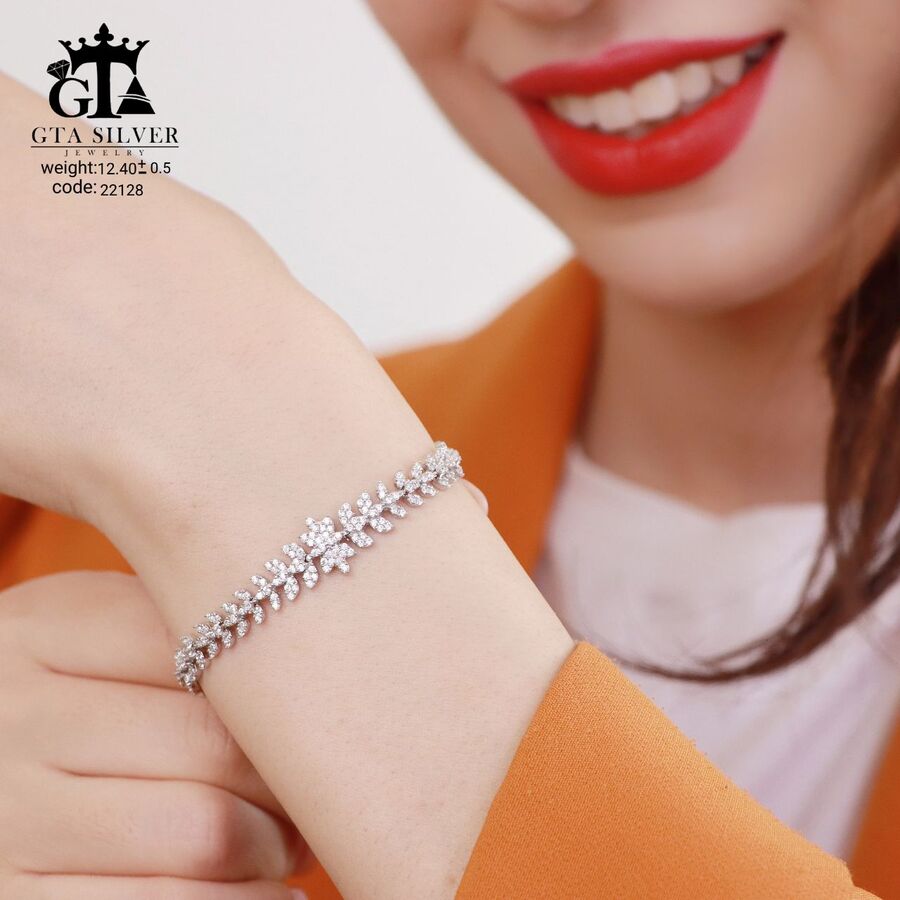 دستبند میکرو نقره همراه با روکش آبطلای سفید؛ عیار 925، تمامی نگین های این دستبند جدید و ظریف با روش جدید میکروستینگ مخراج کاری شده است.