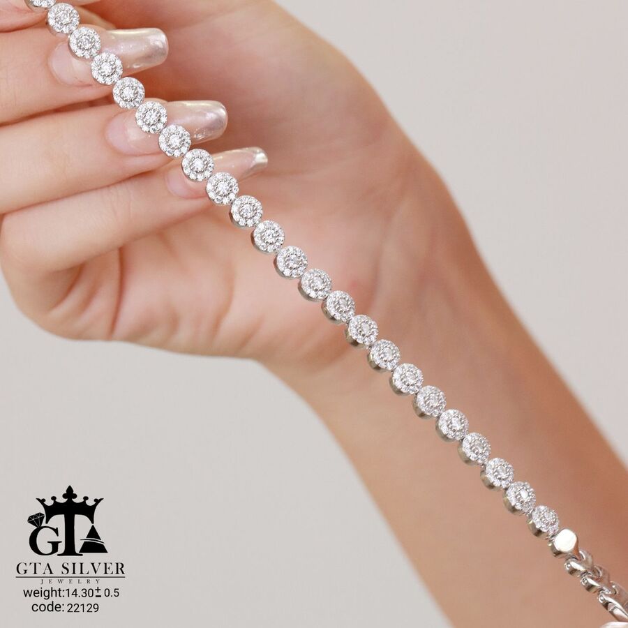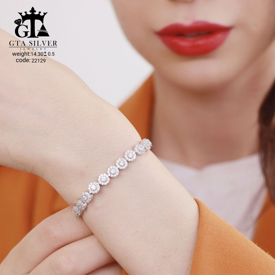 دستبند میکرو نقره همراه با روکش آبطلای سفید؛ عیار 925، تمامی نگین های این دستبند جدید و ظریف با روش جدید میکروستینگ مخراج کاری شده است.