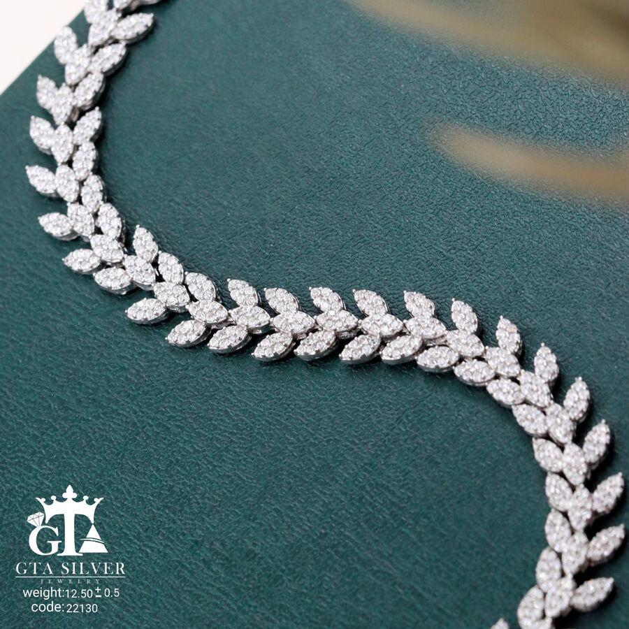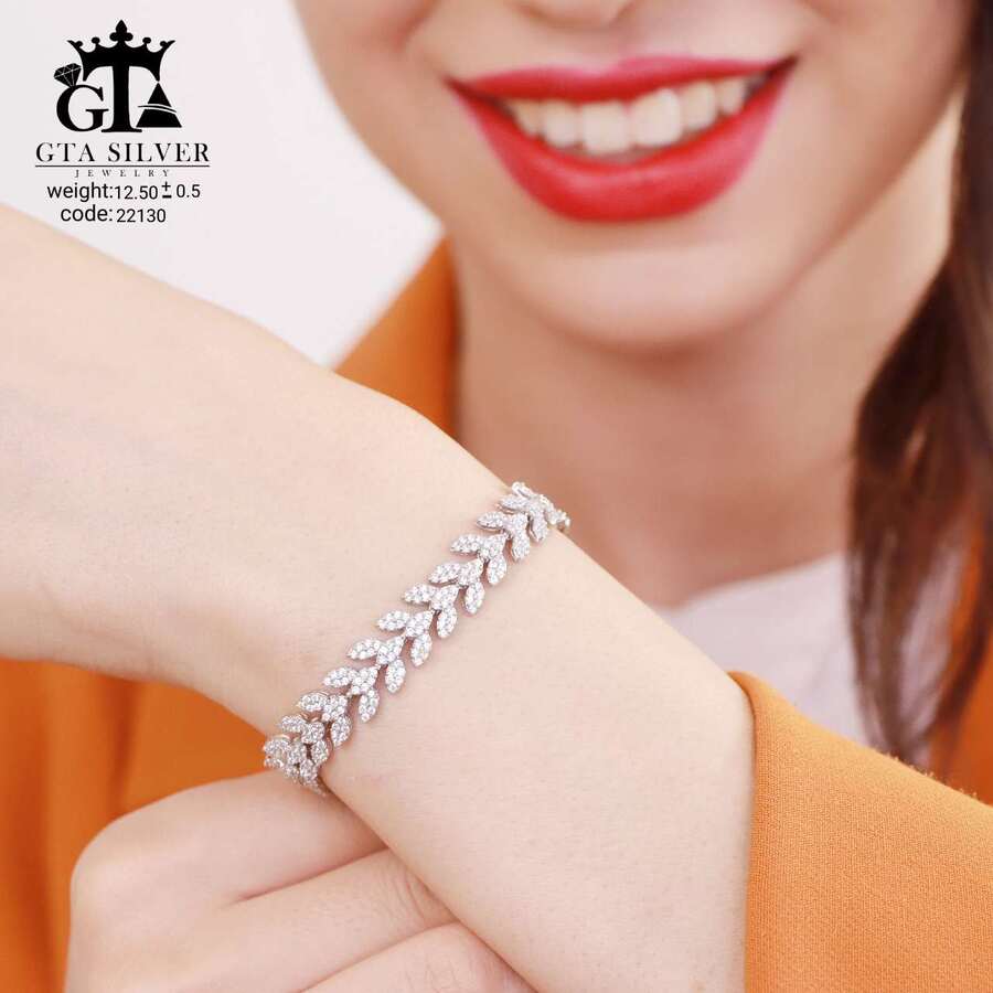 دستبند میکرو نقره همراه با روکش آبطلای سفید؛ عیار 925، تمامی نگین های این دستبند جدید و ظریف با روش جدید میکروستینگ مخراج کاری شده است.