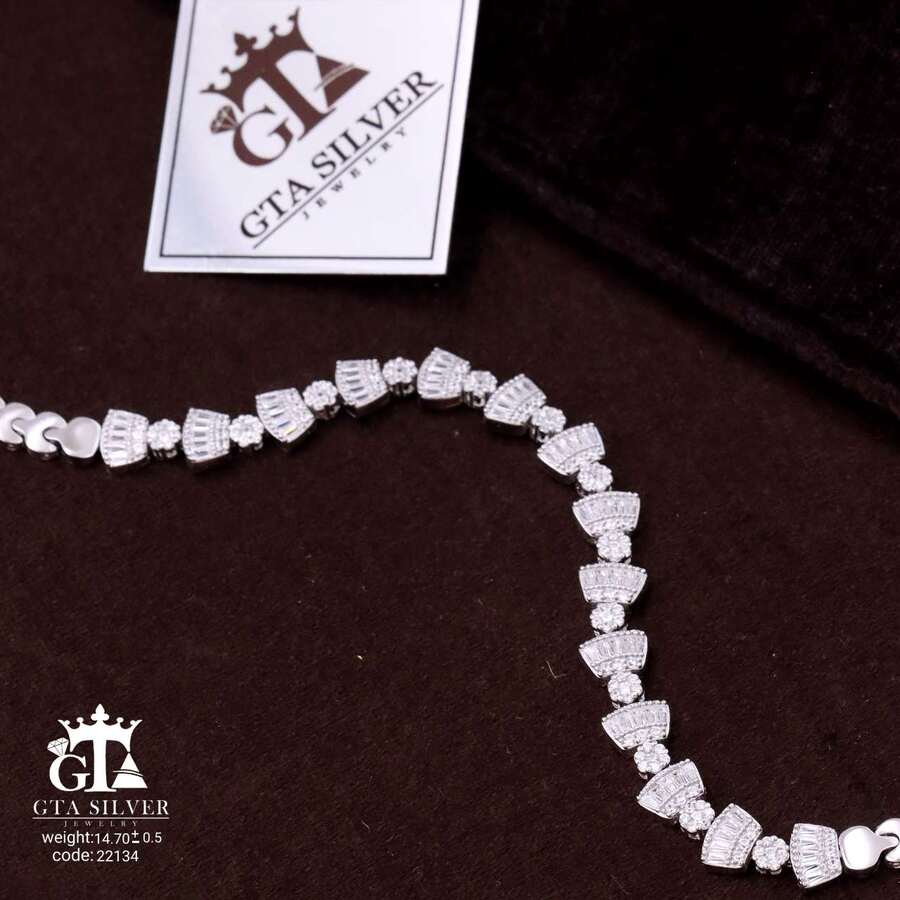دستبند میکرو نقره همراه با روکش آبطلای سفید؛ عیار 925، تمامی نگین های این دستبند جدید و ظریف با روش جدید میکروستینگ مخراج کاری شده است.