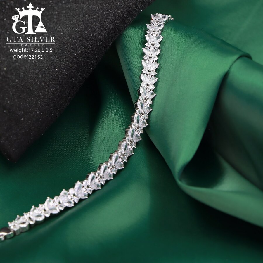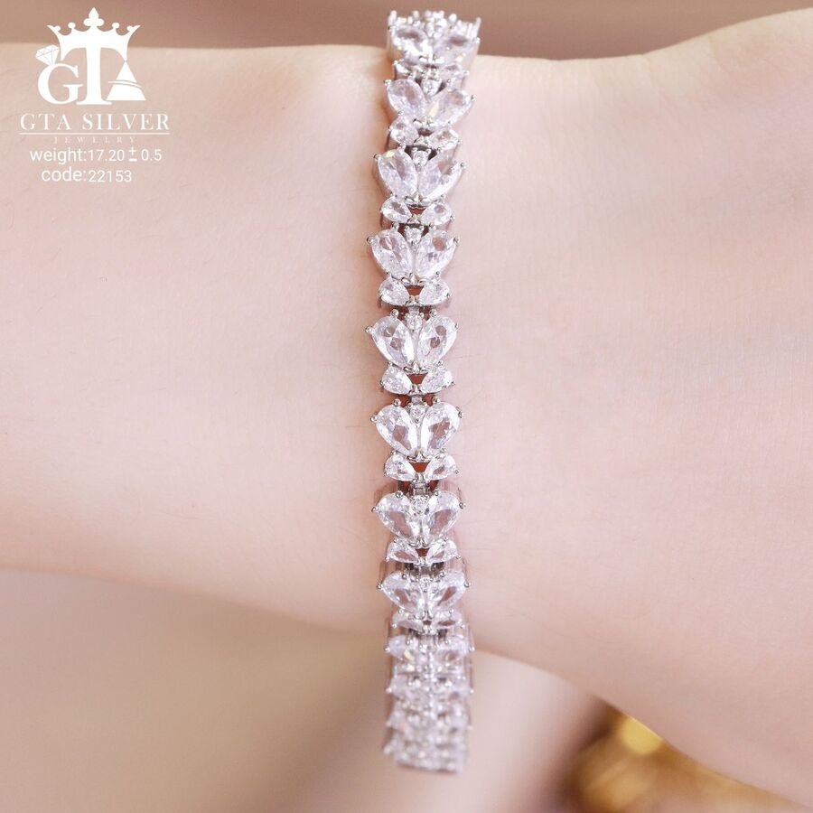 دستبند میکرو نقره همراه با روکش آبطلای سفید؛ عیار 925، تمامی نگین های این دستبند جدید و ظریف با روش جدید میکروستینگ مخراج کاری شده است.