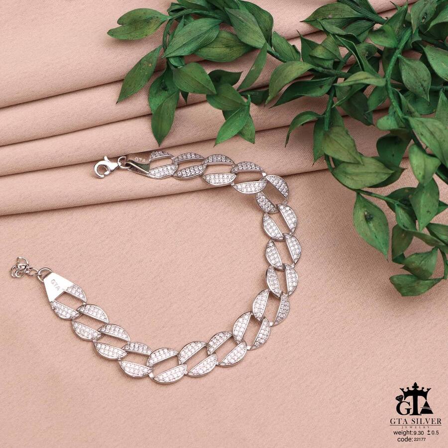 دستبند میکرو نقره همراه با روکش آبطلای سفید؛ عیار 925، تمامی نگین های این دستبند جدید و ظریف با روش جدید میکروستینگ مخراج کاری شده است.