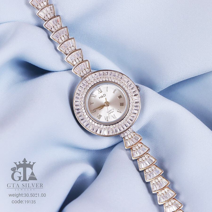 ساعت نقره جواهری روکش رادیوم کد 19135