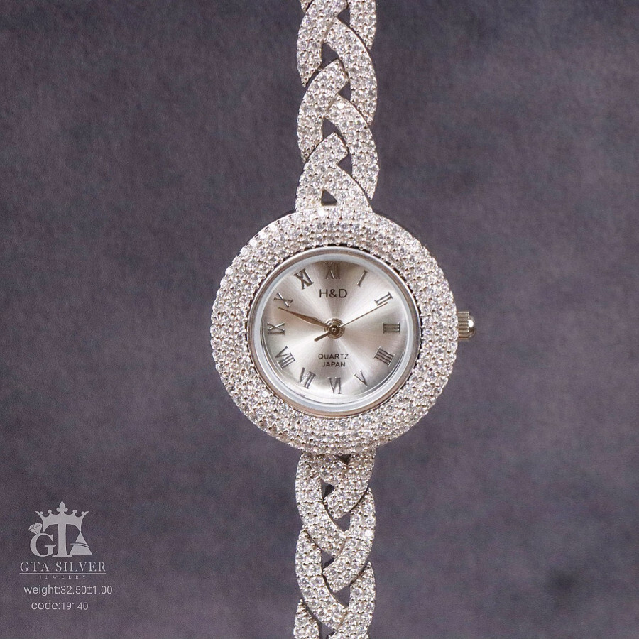 ساعت نقره جواهری روکش رادیوم کد 19140