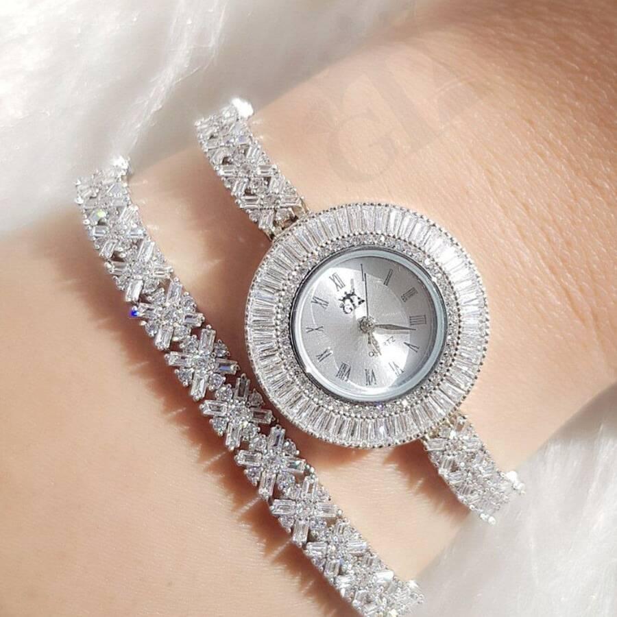 ساعت زنانه طرح امرالدکات مارک GTA که با نگین های برلیان 3A+ که به روش میکروستینگ مخراجکاری شده اند. تمامی ساعت های GTA با روکش رودیم (طلاسفید) آبکاری شده اند. موتور ساخت میوتای ژاپن و دارای گارانتی دو ساله است و محصول با شناسنامه اصل شرکت عرضه میگردد