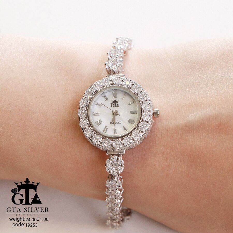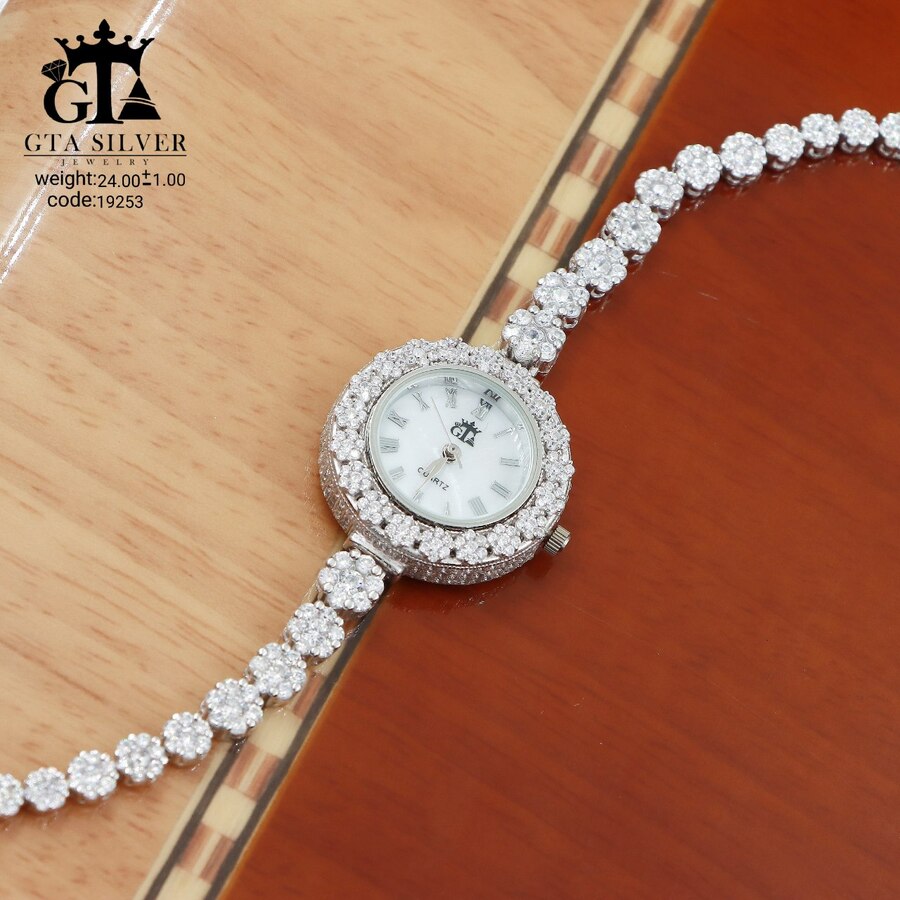 ساعت جواهری رودیوم طرح فلاور با نگین های برلیان, کاری بسیار ظریف و زیبا همراه با روکش آب طلای سفید می باشد. عیار این کار همانند تمامی کار های موجود عیار استاندارد 925 می باشد.