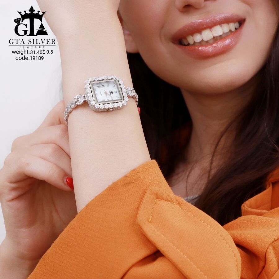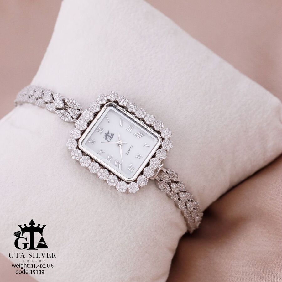ساعت جواهری رودیوم با نگین های برلیان, کاری بسیار ظریف و زیبا همراه با روکش آب طلای سفید می باشد. عیار این کار همانند تمامی کار های موجود عیار استاندارد 925 می باشد.