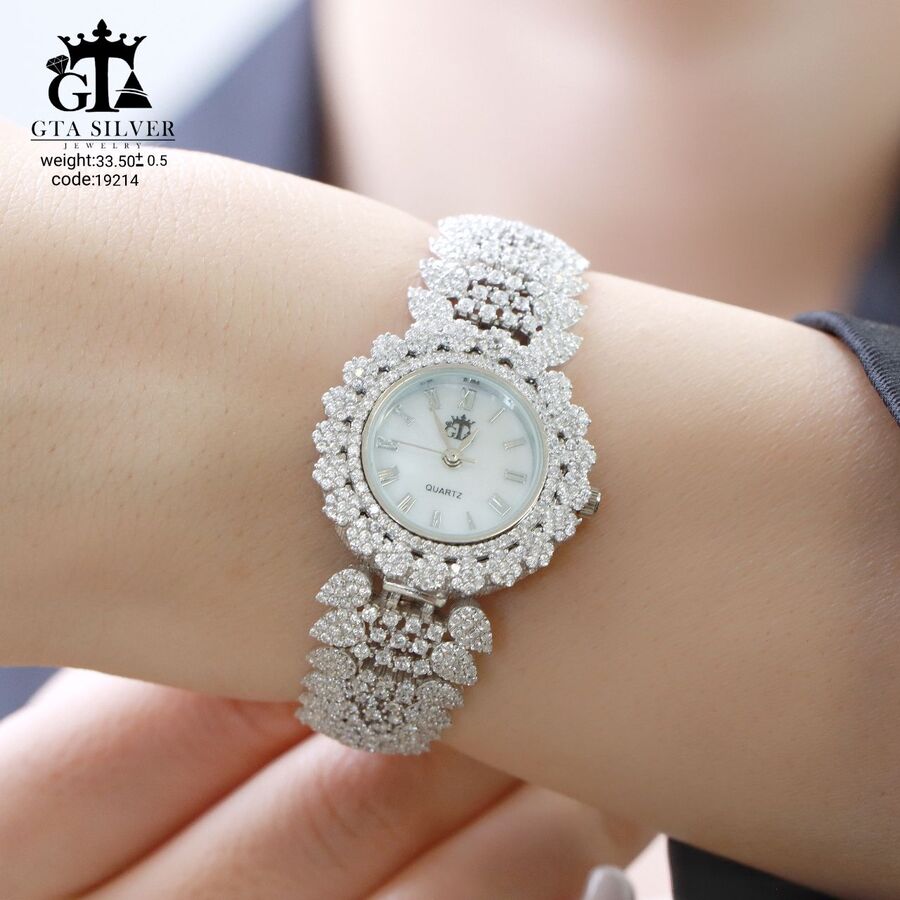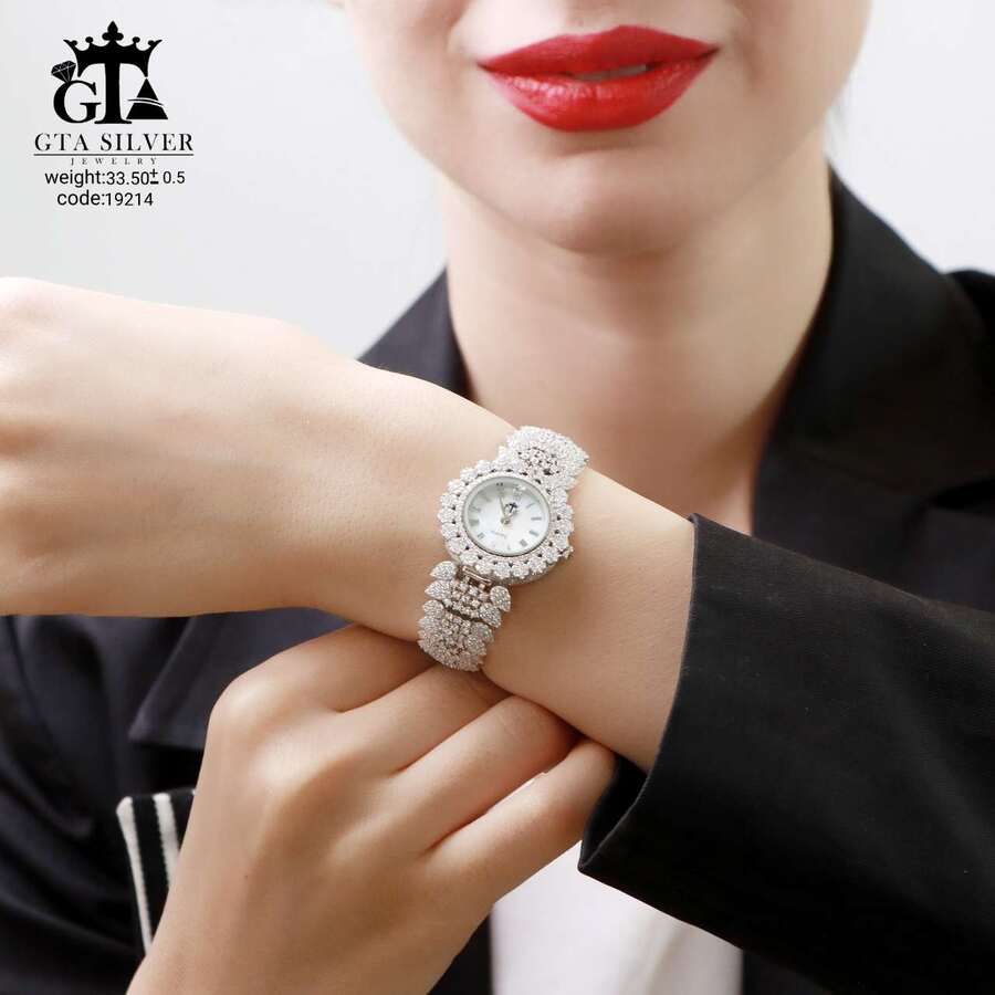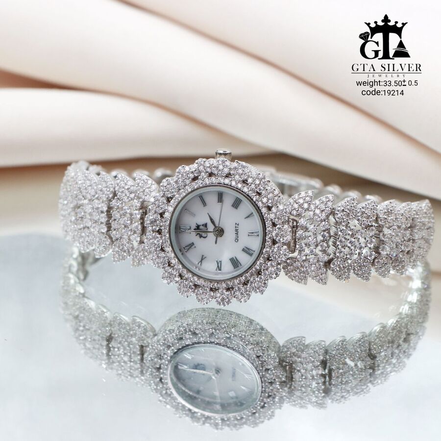 ساعت جواهری رودیوم با نگین های برلیان, کاری بسیار ظریف و زیبا همراه با روکش آب طلای سفید می باشد. عیار این کار همانند تمامی کار های موجود عیار استاندارد 925 می باشد.