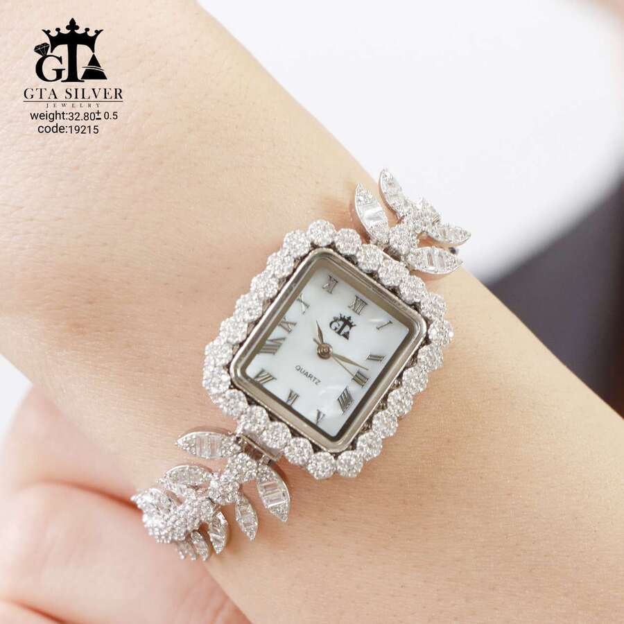ساعت جواهری رودیوم با نگین های برلیان و باگت, کاری بسیار ظریف و زیبا همراه با روکش آب طلای سفید می باشد. عیار این کار همانند تمامی کار های موجود عیار استاندارد 925 می باشد.