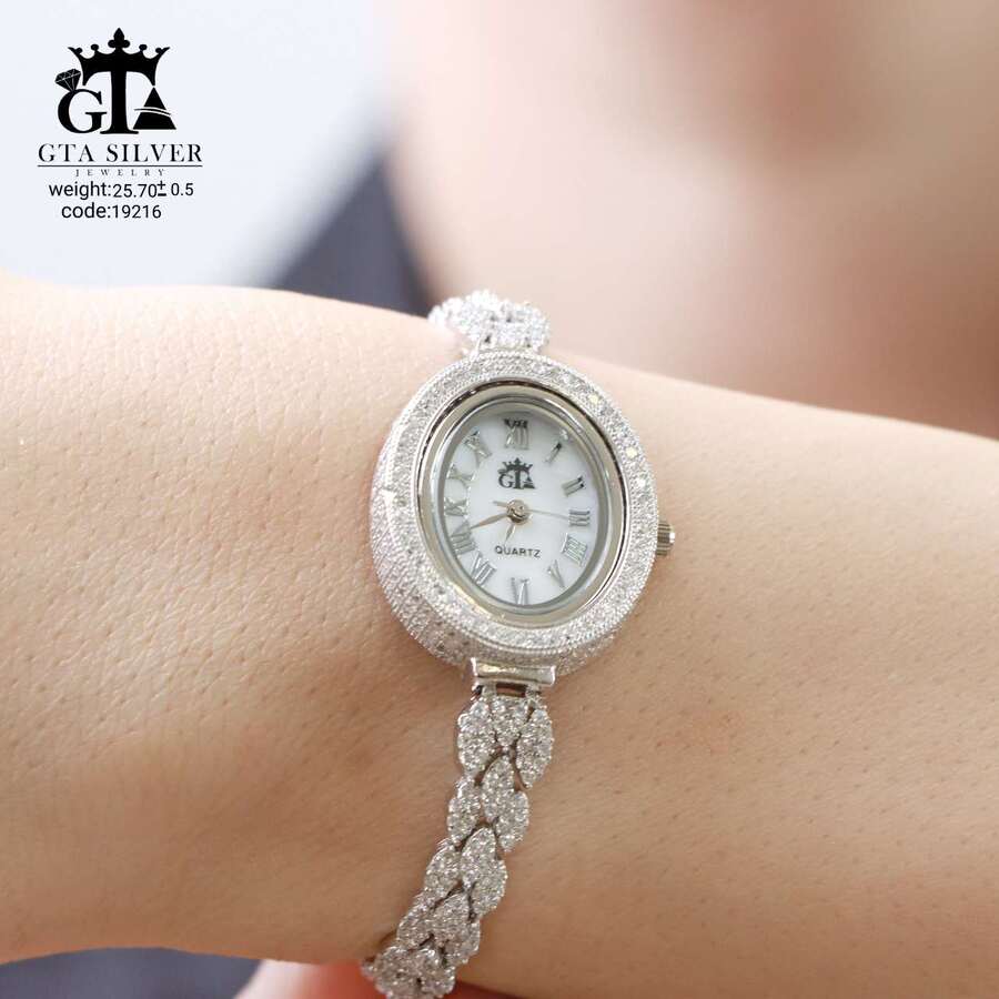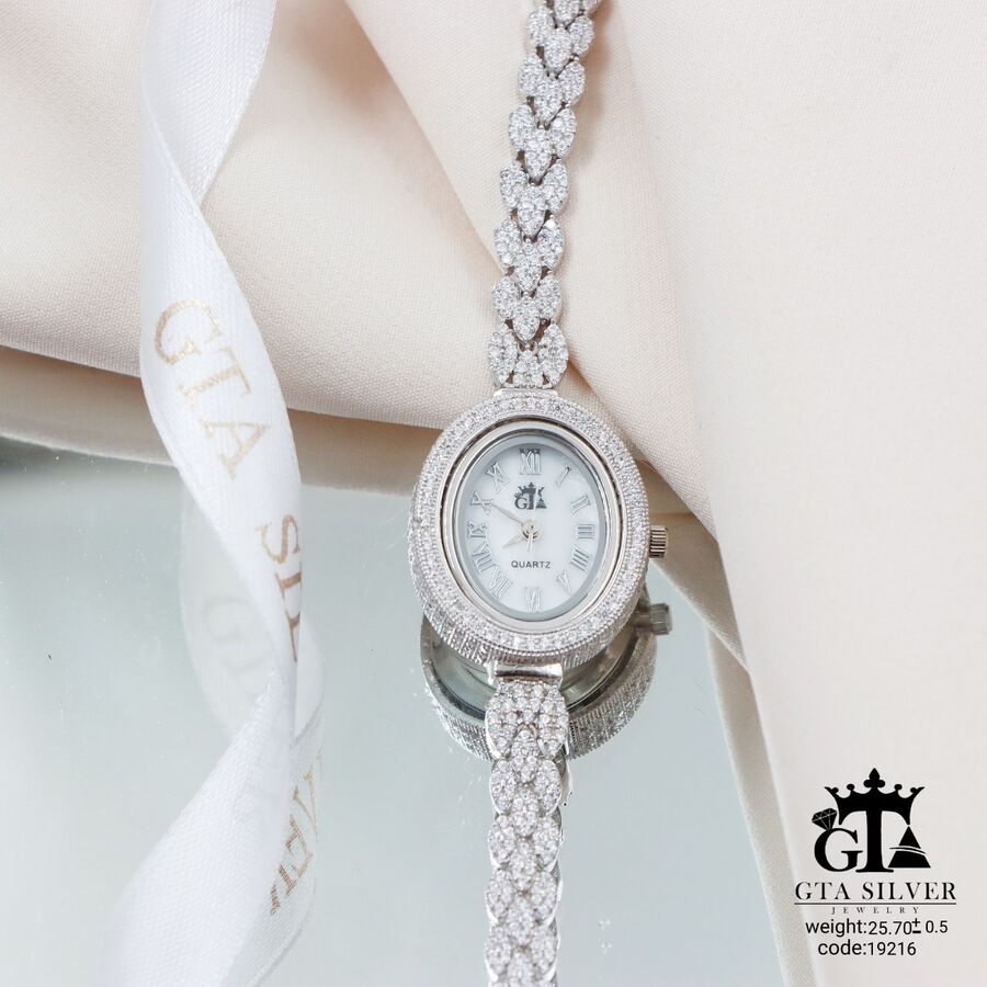 ساعت جواهری رودیوم با نگین های برلیان, کاری بسیار ظریف و زیبا همراه با روکش آب طلای سفید می باشد. عیار این کار همانند تمامی کار های موجود عیار استاندارد 925 می باشد.