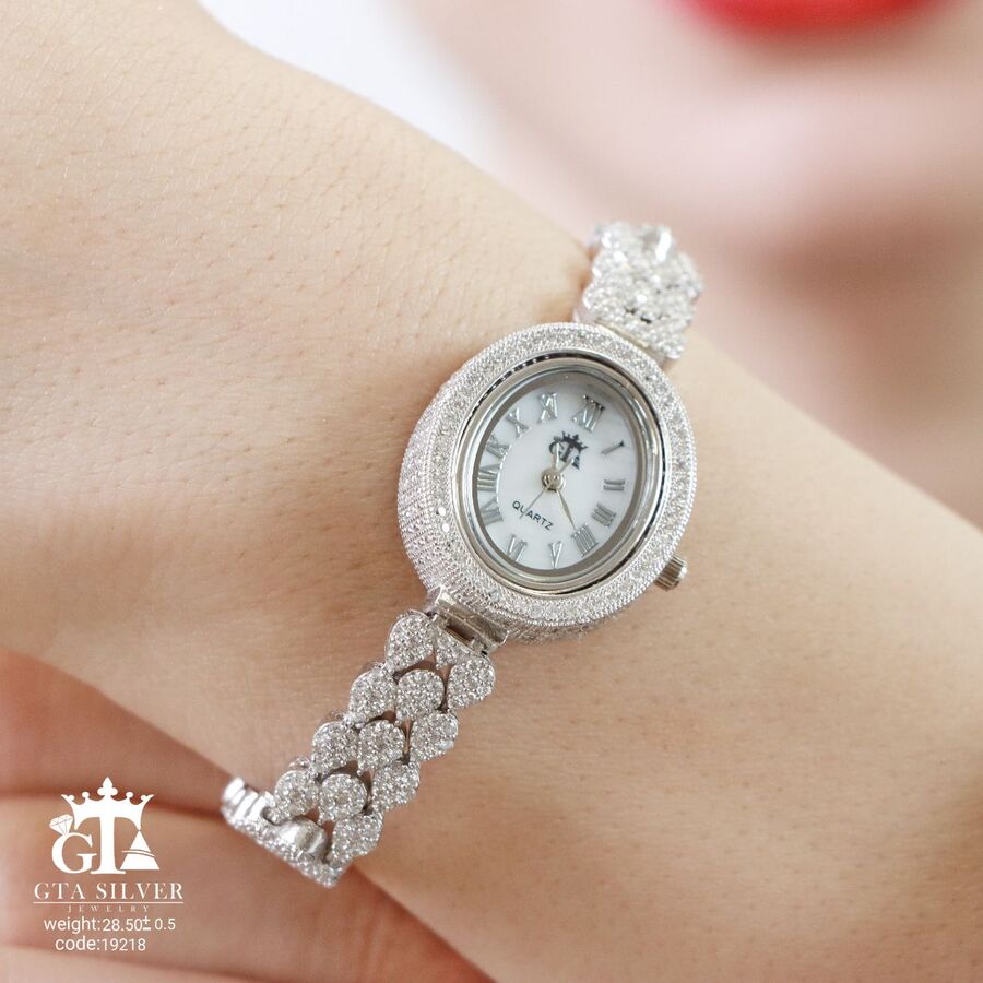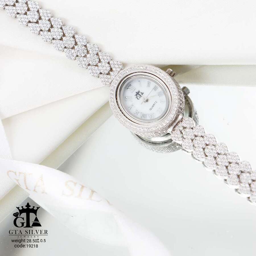 ساعت جواهری رودیوم با نگین های برلیان, کاری بسیار ظریف و زیبا همراه با روکش آب طلای سفید می باشد. عیار این کار همانند تمامی کار های موجود عیار استاندارد 925 می باشد.