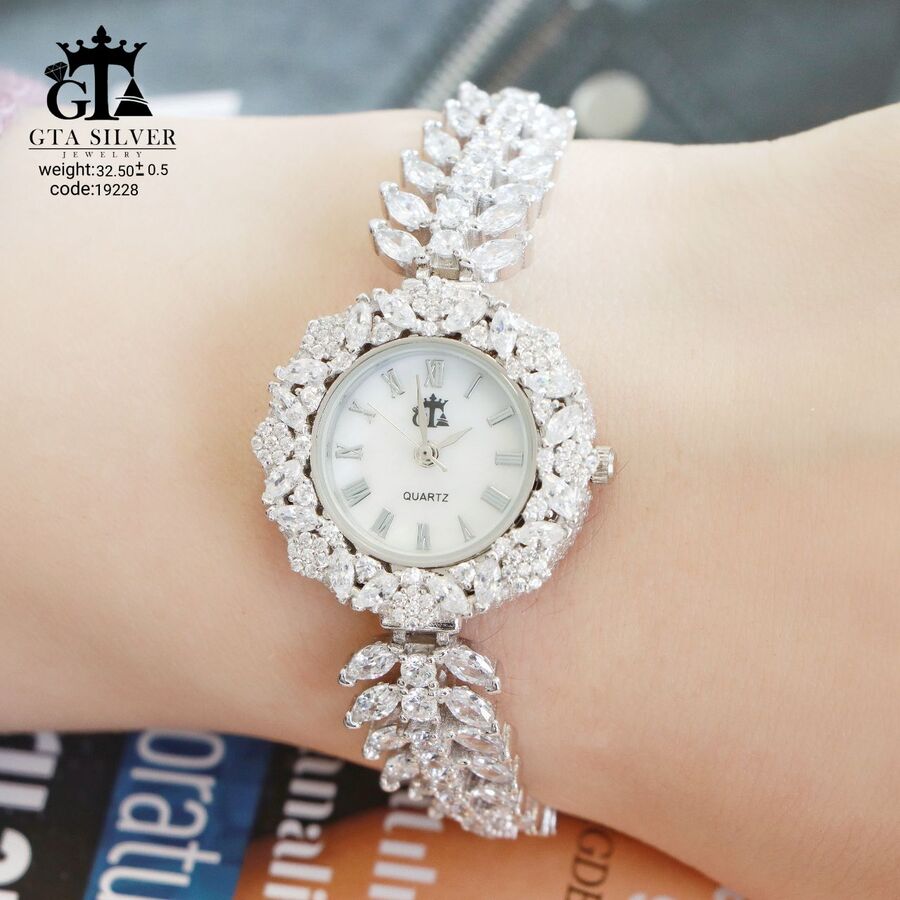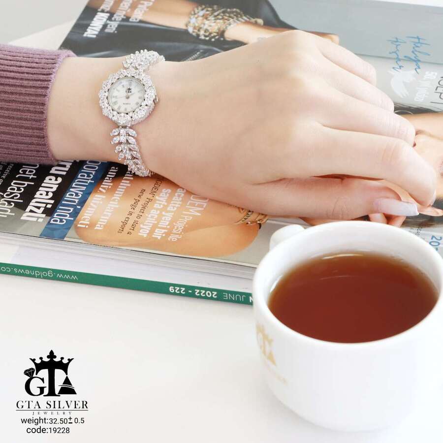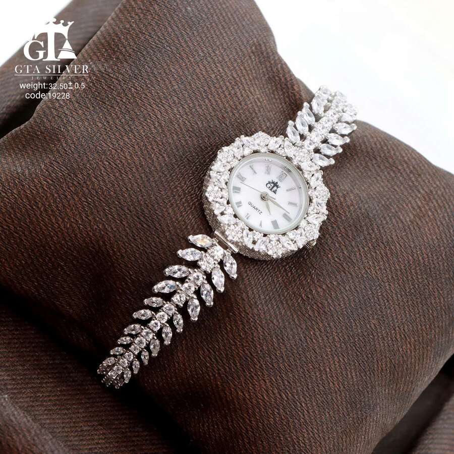 ساعت جواهری رودیوم با نگین های برلیان و مارکیز, کاری بسیار ظریف و زیبا همراه با روکش آب طلای سفید می باشد. عیار این کار همانند تمامی کار های موجود عیار استاندارد 925 می باشد.