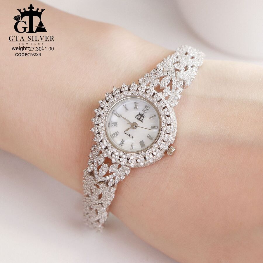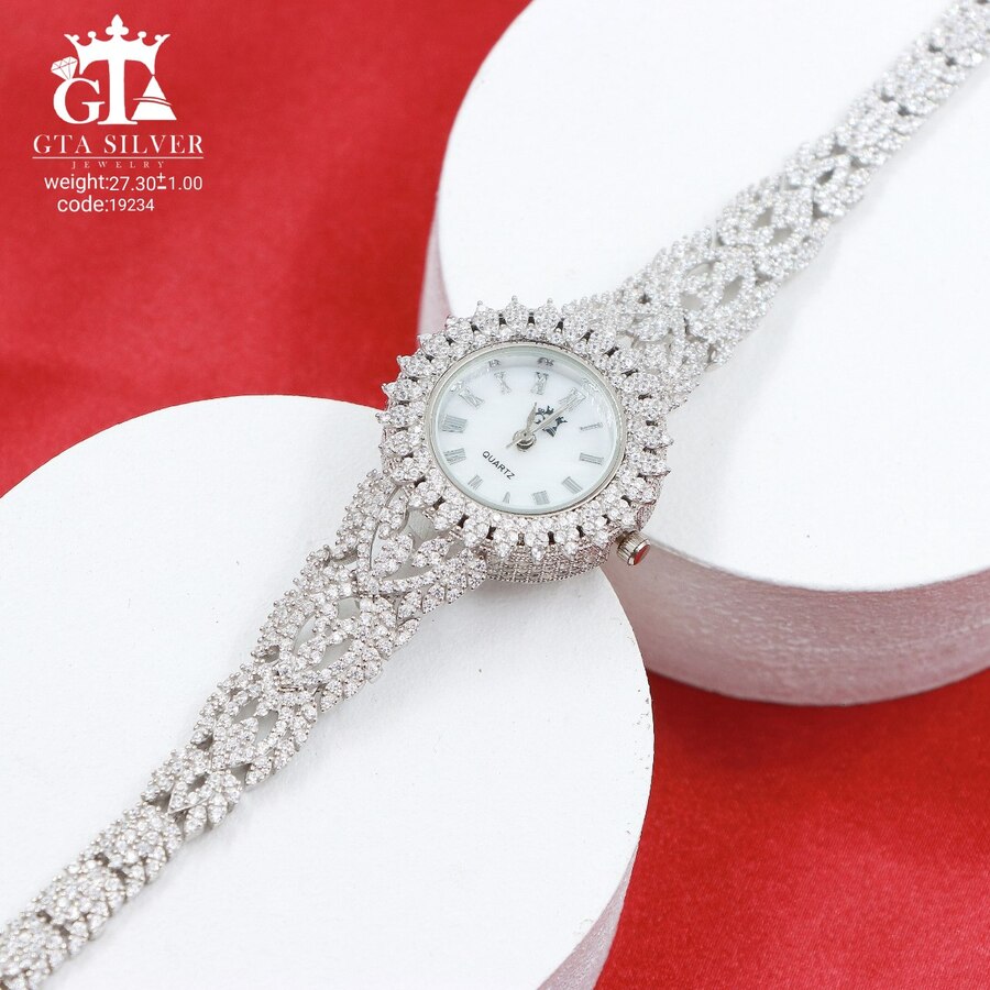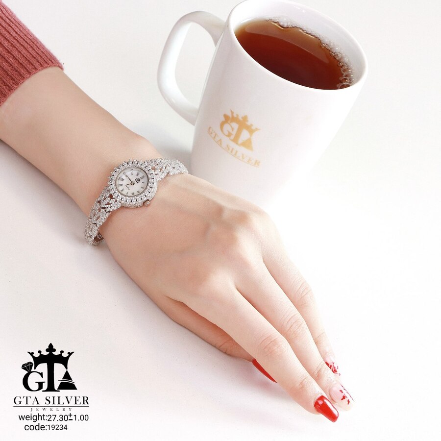 ساعت جواهری رودیوم با نگین های برلیان کاری بسیار ظریف و زیبا همراه با روکش آب طلای سفید می باشد. عیار این کار همانند تمامی کار های موجود عیار استاندارد 925 می باشد.