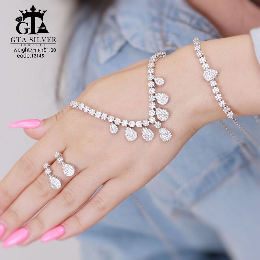 سرویس نقره زنانه طرح برگ زیتون مدل میکرو زنجیری کد 12149