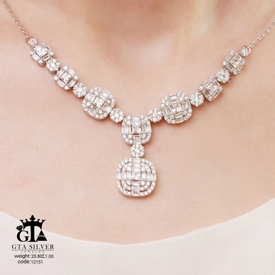 سرویس نقره نگین سبز مدل زنجیری سوپر میکرو کد 39007