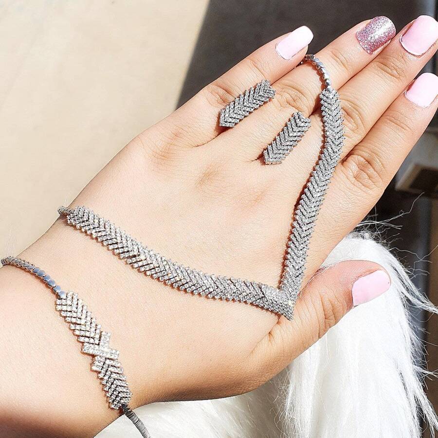 سرویس طرح آتنا که دارای روکش طلای سفید می باشد و نگین هایش با روش میکروستینگ مخراج کاری شده است. همچنین عیار این کار 925 می باشد.