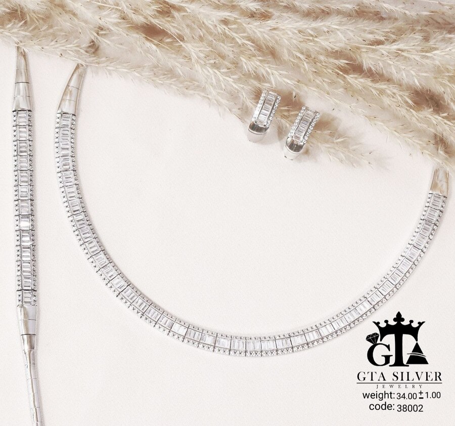 سرویس نقره مدل سوپر میکرو همراه با روکش آبطلای سفید؛ عیار 925، تمامی نگین های این سرویس جدید با روش جدید میکروستینگ مخراج کاری شده است.