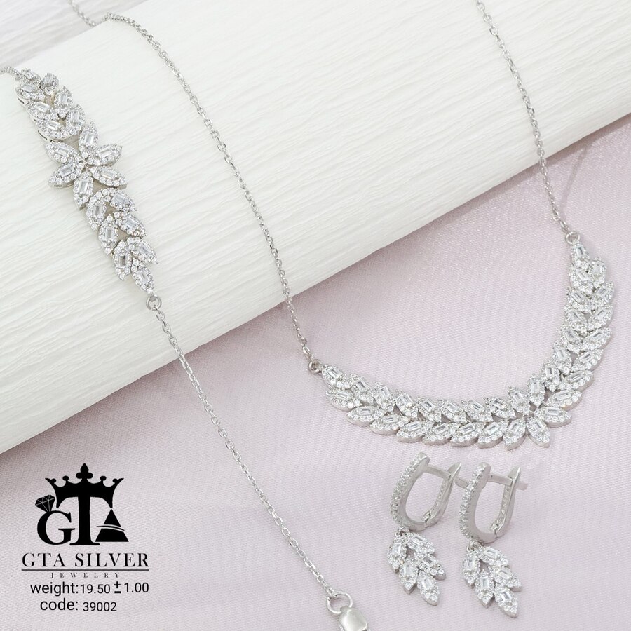 سرویس نقره مدل سوپر میکرو زنجیری همراه با روکش آبطلای سفید؛ عیار 925، تمامی نگین های این سرویس جدید با روش جدید میکروستینگ مخراج کاری شده است.