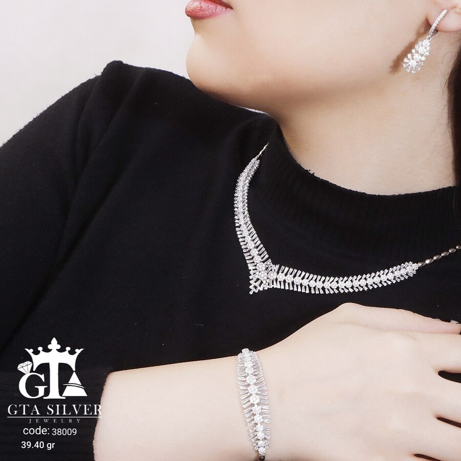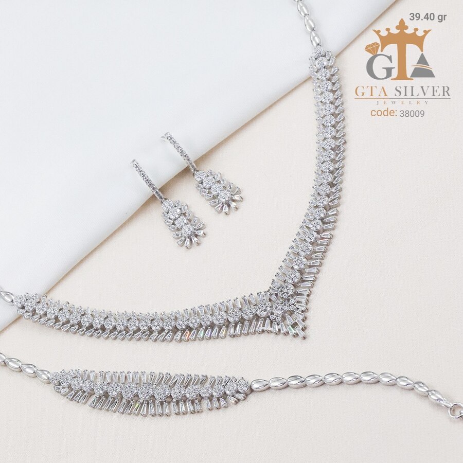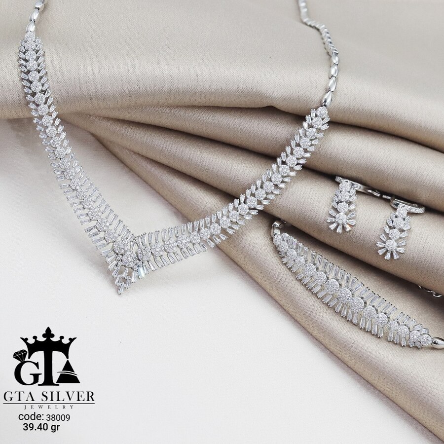 سرویس نقره مدل سوپر میکرو همراه با روکش آبطلای سفید؛ عیار 925، تمامی نگین های این سرویس جدید با روش جدید میکروستینگ مخراج کاری شده است.