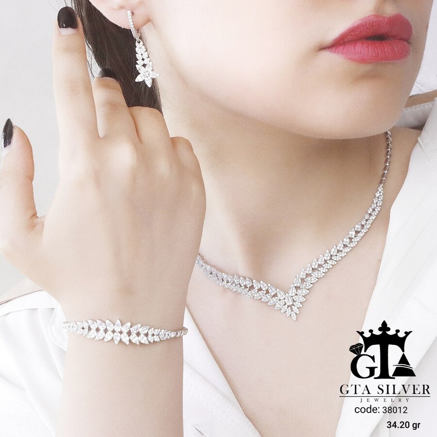سرویس نقره مدل سوپر میکرو همراه با روکش آبطلای سفید؛ عیار 925، تمامی نگین های این سرویس جدید با روش جدید میکروستینگ مخراج کاری شده است.
