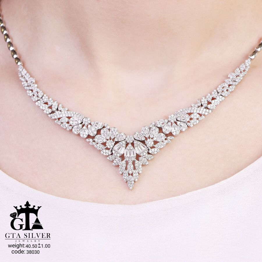 سرویس نقره مدل سوپر میکرو همراه با روکش آبطلای سفید؛ عیار 925، تمامی نگین های این سرویس جدید با روش جدید میکروستینگ مخراج کاری شده است.