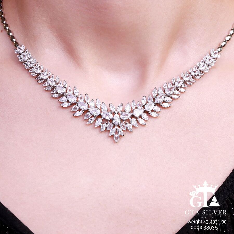 سرویس نقره مدل سوپر میکرو همراه با روکش آبطلای سفید؛ عیار 925، تمامی نگین های این سرویس جدید با روش جدید میکروستینگ مخراج کاری شده است.
