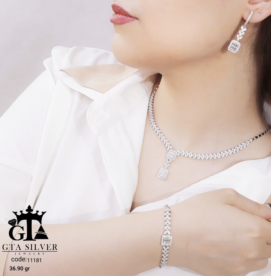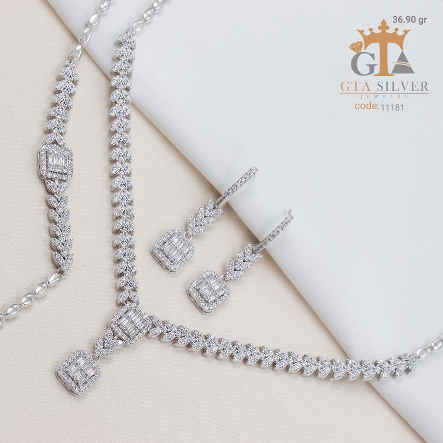 سرویس نقره مدل مارسا همراه با روکش آبطلای سفید؛ عیار 925، تمامی نگین های این سرویس جدید با روش جدید میکروستینگ مخراج کاری شده است.