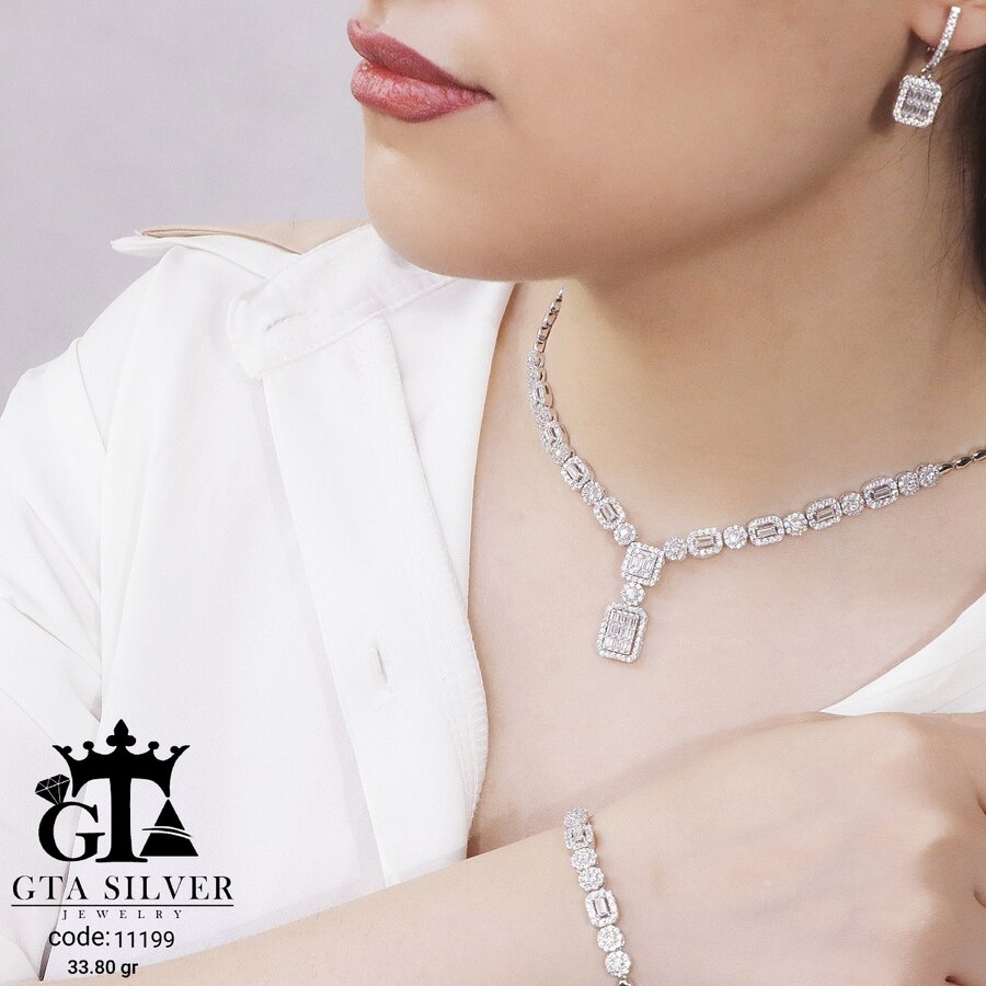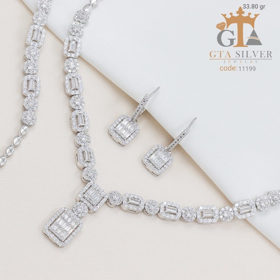 سرویس نقره مدل مارسا همراه با روکش آبطلای سفید؛ عیار 925، تمامی نگین های این سرویس جدید با روش جدید میکروستینگ مخراج کاری شده است.