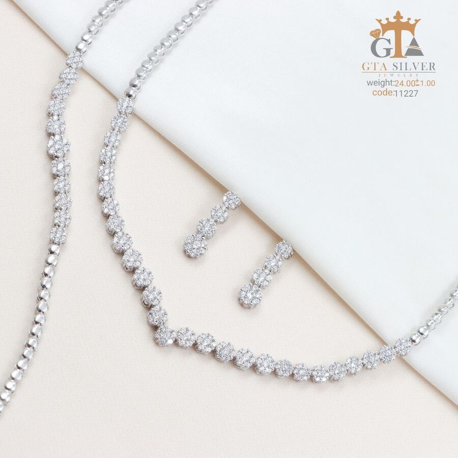 سرویس نقره مدل مارسا همراه با روکش آبطلای سفید؛ عیار 925، تمامی نگین های این سرویس جدید با روش جدید میکروستینگ مخراج کاری شده است.