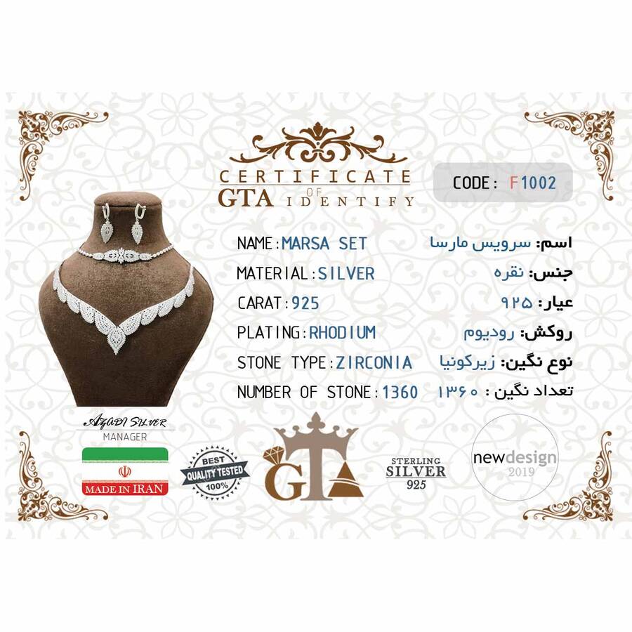 سرویس های مارسا با بهترین و به روزترین روش های تولید جهان ساخته شده و ریزش نگین ندارند؛ همچنین دارای روکش آب طلای سفید می باشند و همراه با شناسنامه معتبر شرکت ارائه می شوند. لازم به ذکر می باشد که عیار تمامی کارها عیار استاندارد 925 می باشد.