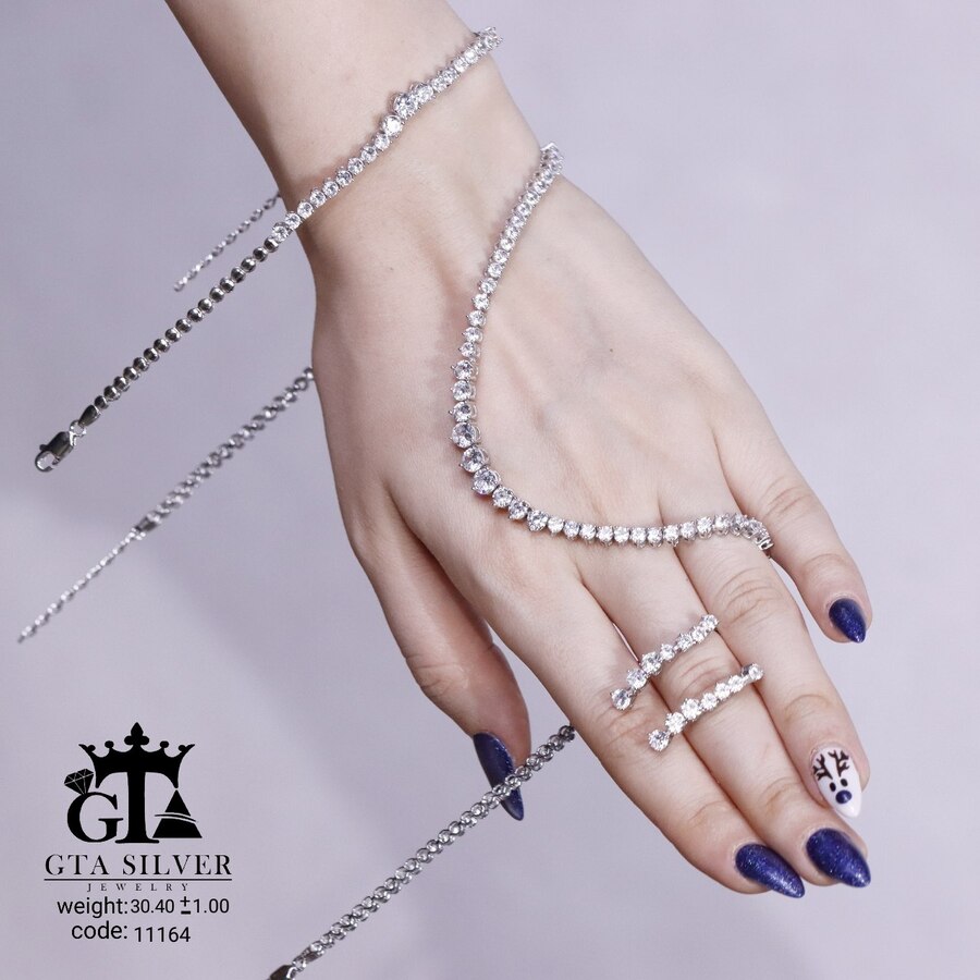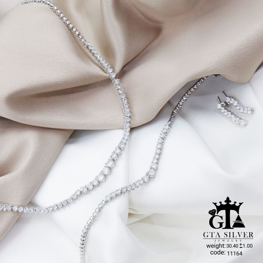 سرویس نقره مدل مارسا همراه با روکش آبطلای سفید؛ عیار 925، تمامی نگین های این سرویس جدید با روش جدید میکروستینگ مخراج کاری شده است.