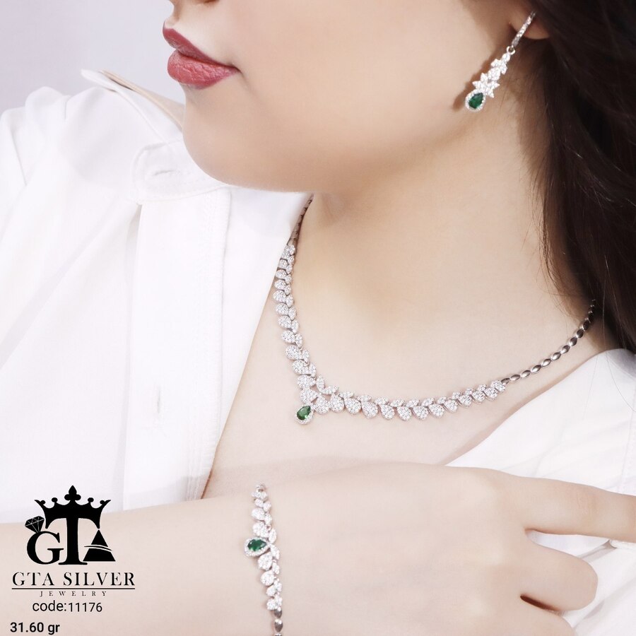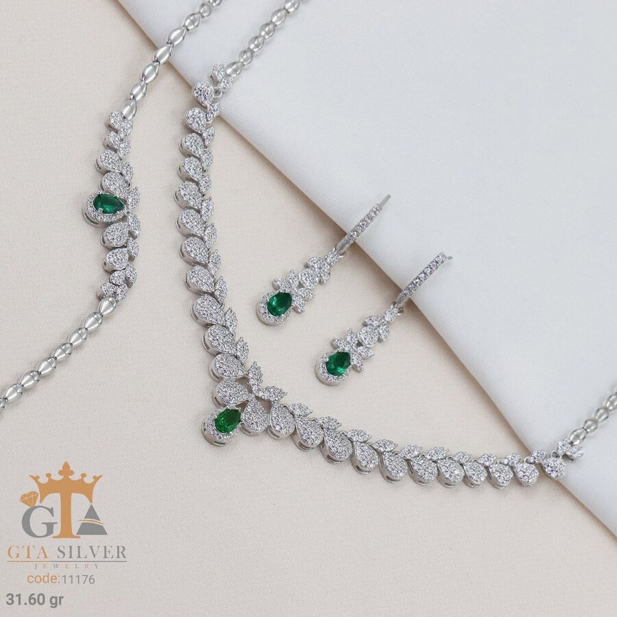 سرویس نقره مدل مارسا همراه با روکش آبطلای سفید؛ عیار 925، تمامی نگین های این سرویس جدید با روش جدید میکروستینگ مخراج کاری شده است.